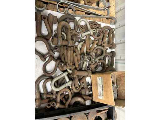 2 équipements de levage de palettes, chaînes, crochets, menottes.