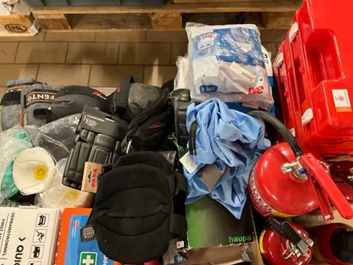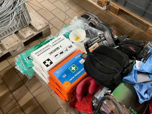 Composée de : trousses de premiers secours, extincteurs, genouillères, etc