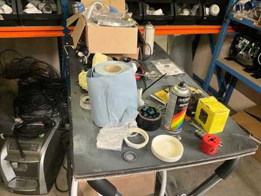 Composé de 5 montants verticaux de 78x190 cm, +12 x poutre de 180 cm, +2x montants droits de 44x130 cm, avec un contenu composé de connecteurs en PVC, de jets, de commandes, de boîtes de peinture, de câbles, de ponts pliants, etc.