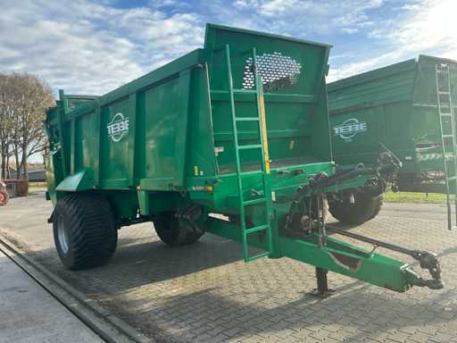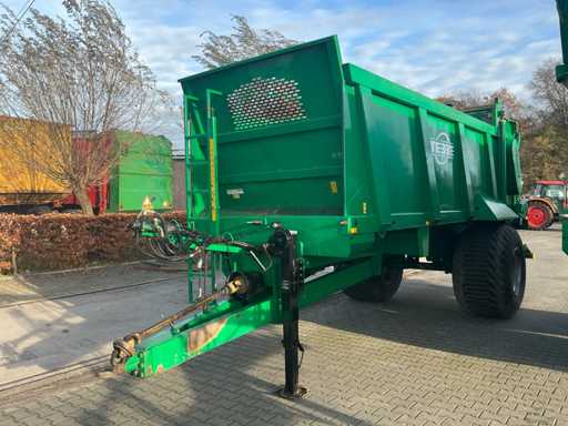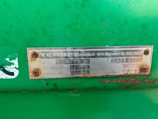 Équipé de : Le Tebbe HS120 de 2004 est un épasseur de fumier à essieu unique d’un poids total autorisé de 12 000 kg, d’une charge maximale par essieu de 10 000 kg, d’une charge de support de 2 000 kg, d’une capacité de charge d’environ 12 à 14 m³ et de dimensions d’environ 7,2 m de long, 2,6 m de large et 3,5 m de haut.