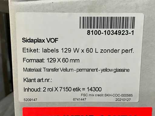 Étiquettes SIDAPLAX 129x60mm (114400x)