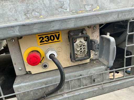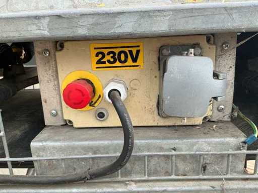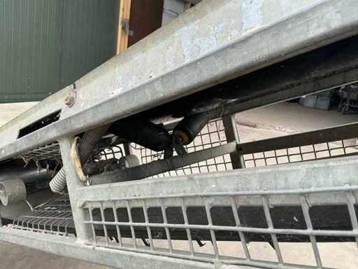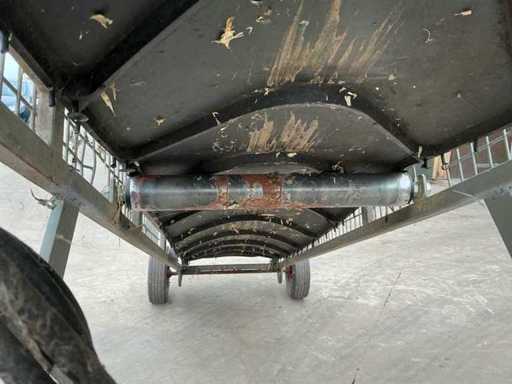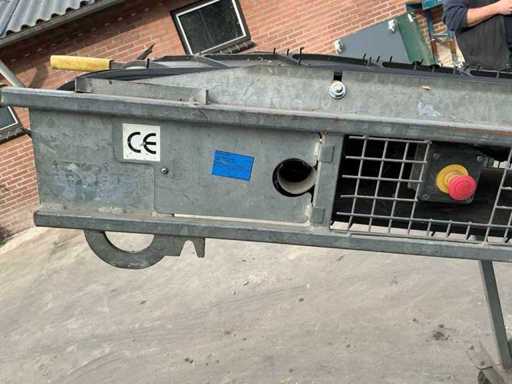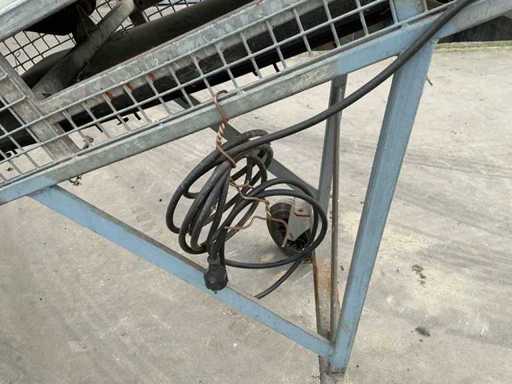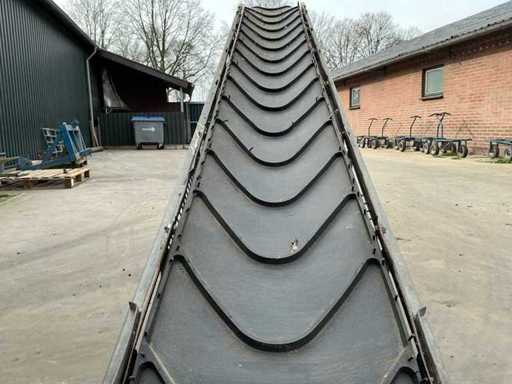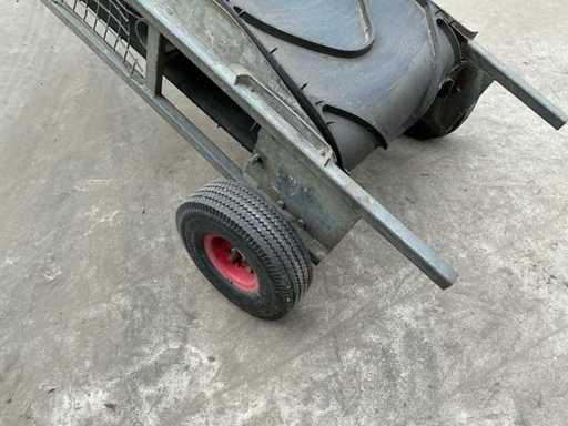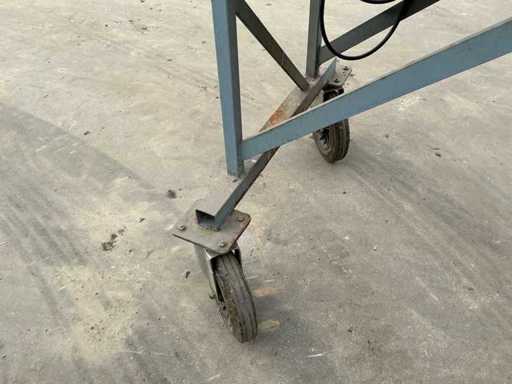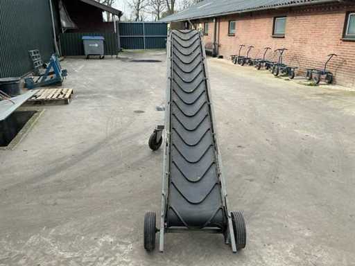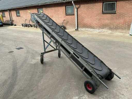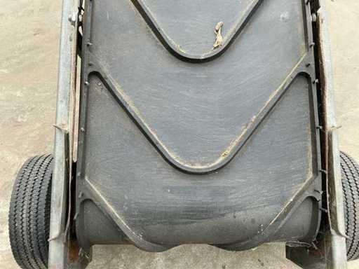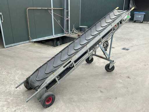 Équipé de : Moteur : 230 V, puissance : 370 W, poids : 100 kg, largeur des pneus : 360 mm, vitesse de courroie : 24 m/min, max. Angle de montée : 40°, capacité : jusqu’à 50 tonnes/h, châssis en acier, peut être raccordé en série, arrêt d’urgence,