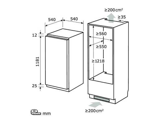 Réfrigérateur ; intégré ; Niche taille 122 cm ; capacité 201 L ; accessoire de glissière ; Porte réversible