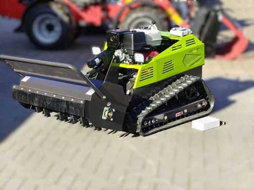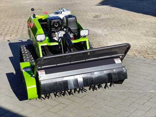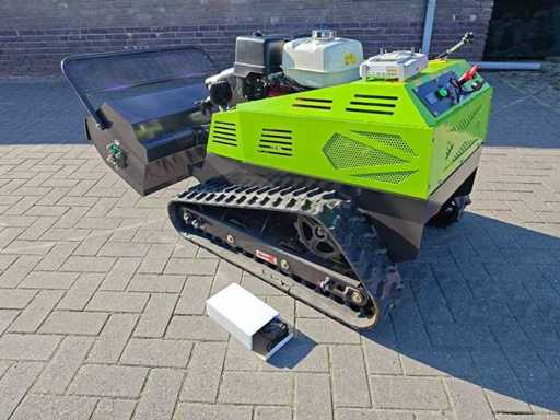 tondeuse à fléaux à télécommande via télécommande, chenilles électriques pour tondre les talus et les verges, moteur essence Honda pour la tonte en voiture. avec un chargeur 220 volts, inutilisé