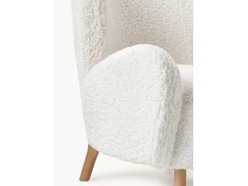 Matière Revêtement : 100% polyester Type de tissage : teddy Testé à 20.000 cycles selon l’échelle Martindale, le tissu offre une résistance exceptionnelle à l’usure – idéal pour un usage quotidien. Revêtement : mousse Densité : 32 kg/m³ Pieds : bois de hêtre Cadre : métal Dimensions globales : larg. 78 cm, haut. 85 cm, prof. 80 cm Dimensions de l'assise : larg. 59 cm, haut. 44 cm, prof. 63 cm Accoudoirs : haut. 55 cm Charge maximale : 120 kg