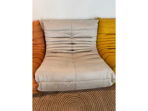 1x Fauteuil Design, beige, tissu polyester, modèle : TU12L-1, dimensions : 105x95x73cm, inutilisé