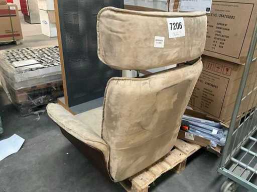 Fauteuil sans base, avec un présentoir en bois recouvert de métal de 60 x 40 x 150 cm.