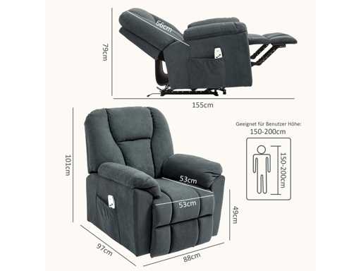 Fauteuil inclinable électrique avec fonctions massage et chauffage