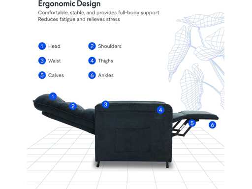 CONCEPTION ERGONOMIQUE: Trois segments du dossier, du coussin d'assise et du repose-pieds épousent les courbes du corps humain. Que vous soyez assis ou allongé, vous bénéficiez d'un bon soutien, ce qui vous permet d'éliminer la fatigue à la maison et de détendre votre corps et votre esprit.