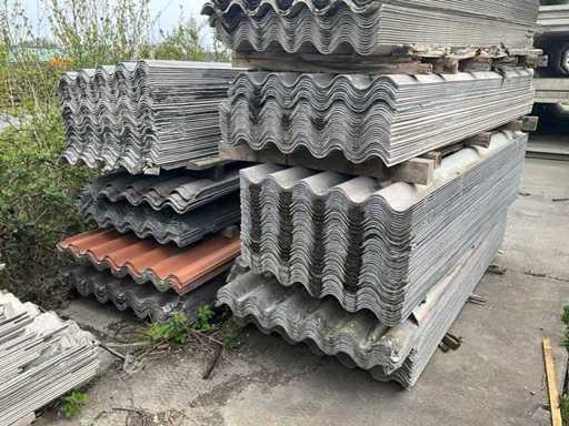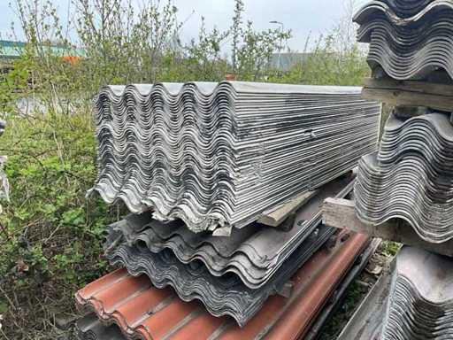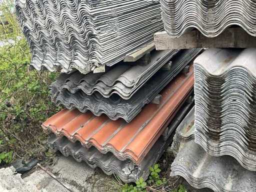 Il s’agit de nombreuses feuilles ondulées sans amiante sans trous de forage de tailles variées. Environ : 580 m2
