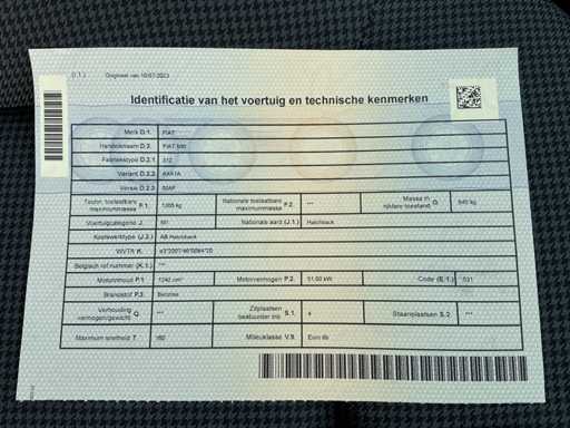 Fiat 500 de 2015 avec seulement 33888 kilomètres au compteur. Très légers dommages corporels (voir photos).