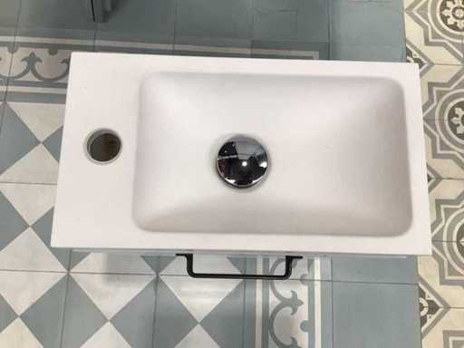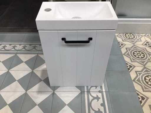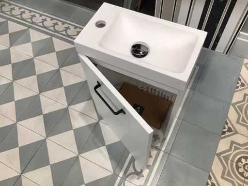 Montrer le modèle de base de la fontaine 40x22x50 cm couleur blanc mat avec poignée noire mat, fontaine solide supérieure 40x22x5 cm et miroir 40x75 cm.