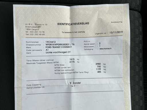 Ford Transit Connect de 2019 avec 120170 kilomètres au compteur kilométrique. En parfait état de fonctionnement. Dommages corporels minimes. Dernier entretien le 11/12/2025.