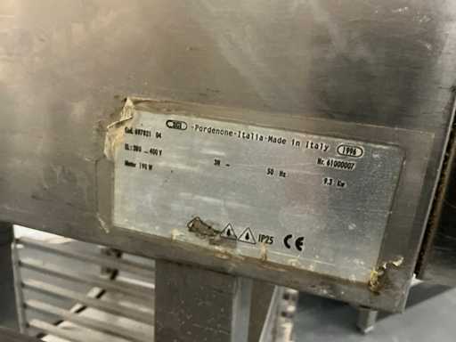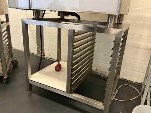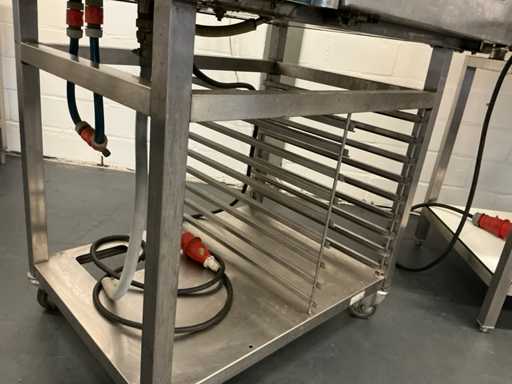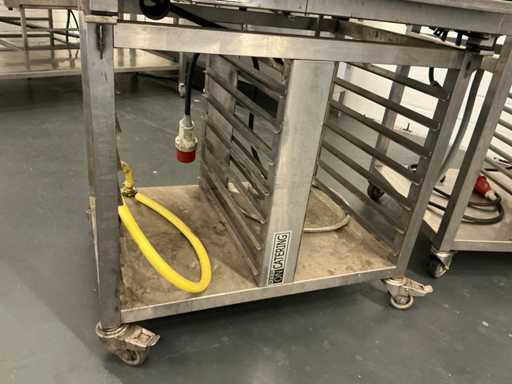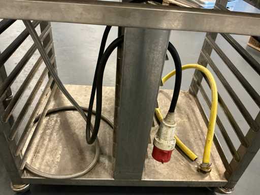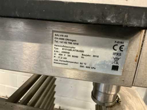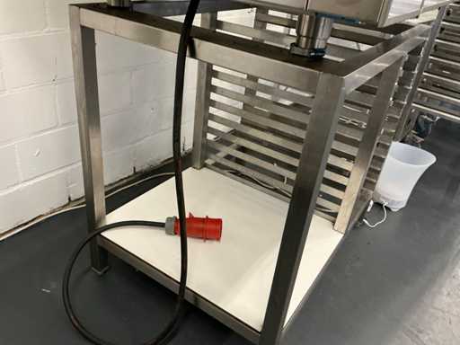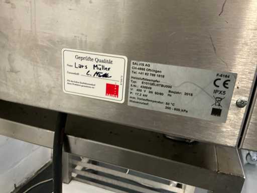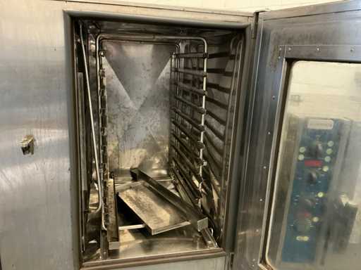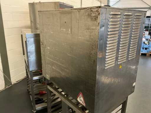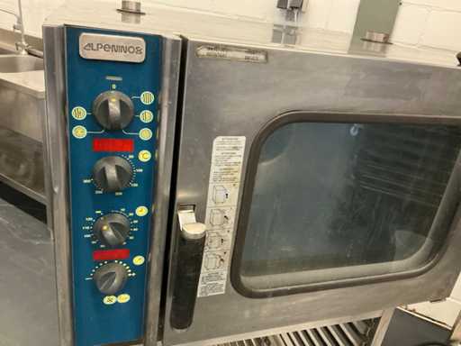 Equipé de : four à convection ALPENINOS 16A (injection d’eau défectueuse) 860x760x1400, cuiseur mixte SALVIS 10x 2/1 GN programmable 985x785x1960, châssis, historique d’entretien, modèle RATIONAL 101 PRIMAL (tuyau de pulvérisation, tête de pulvérisation et 1 bouton manquants) 900x680x1680