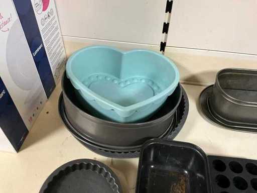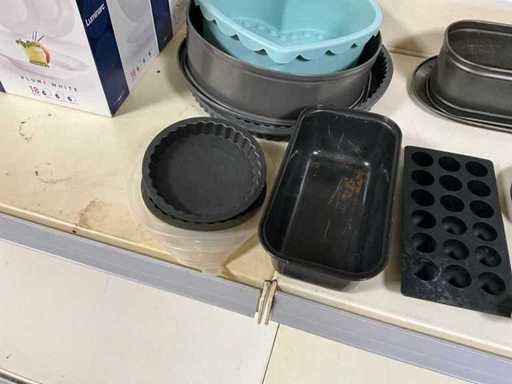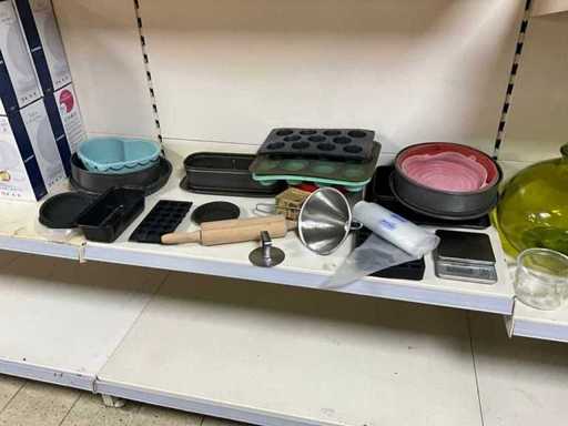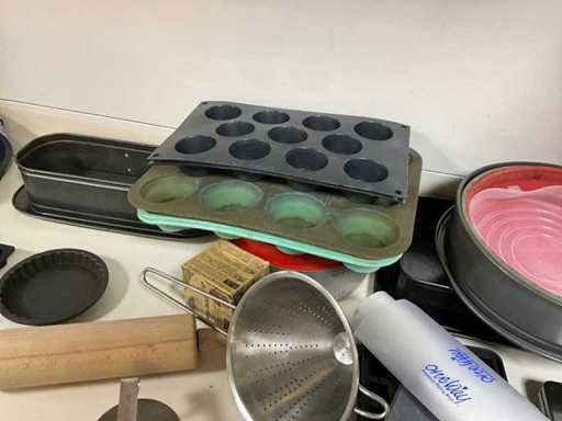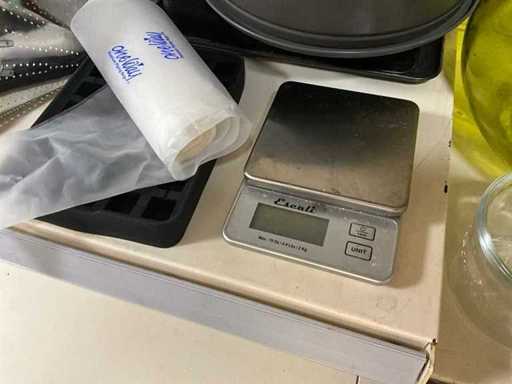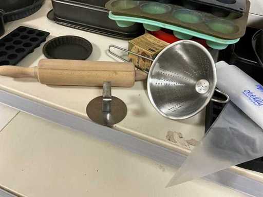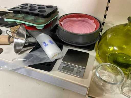 ustensiles en silicone, rouleau à pâtisserie, poches à douille et balances.