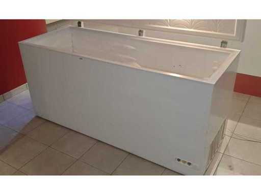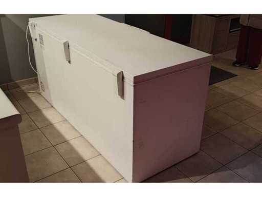 Congélateur à coffre avec une capacité de 670L ! - Congélateur coffre de qualité avec couvercle flottant. - Avec un tuyau de drainage intégré pour l’eau d’infiltration, - Dans le panneau avant, il y a un voyant de signal « en fonctionnement » (vert), un voyant « alarme » (rouge) et un voyant de gel rapide (jaune), - Avec un éclairage interne, ça marche. - Refroidissement : statique, - Isolation (mm) : 60, - Plage de température (ºC) : -23/-18, - Matériau interne : aluminium, - Niveau de bruit (dB) 45 - Poids net (kg) 84, - Dimensions extérieures 1800x690x860, - Taille intérieure 1680x576x700, - Capacité de congélation (kg/24h) 43 - Connexion électrique 220V classique Il est complètement lavé et prêt à être collecté et utilisé.