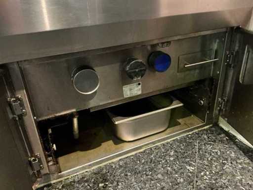 Acier inoxydable complet, raccordement gaz G25, raccord 230V pour le contrôle, double friteuse, extraction, double panneau de contrôle, double drain, couvercles de couvercle.
