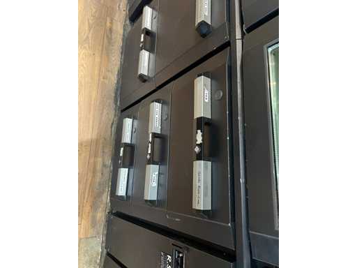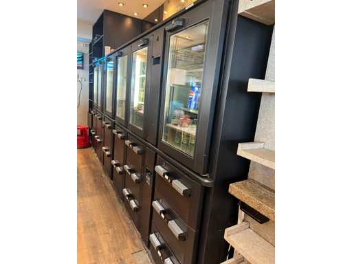 4 segments modulaires, chacun avec 1 compartiment réfrigérateur à double porte en haut et un tiroir refroidissant en bas