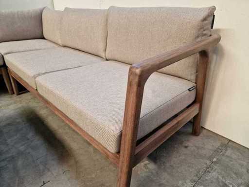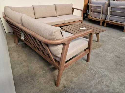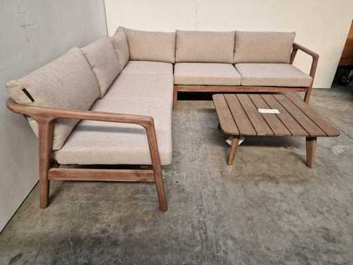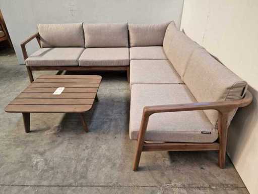 Garden Prestige - Ensemble salon d’angle Égypte avec coussins Sable d’oléfine - Bois Acacia, noyer - Coussins lavables avec fermeture éclair - Inclut une table basse - Neuf