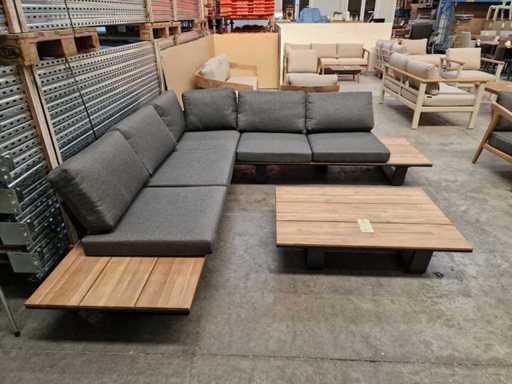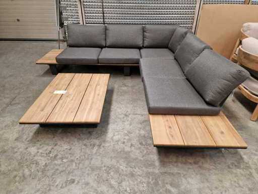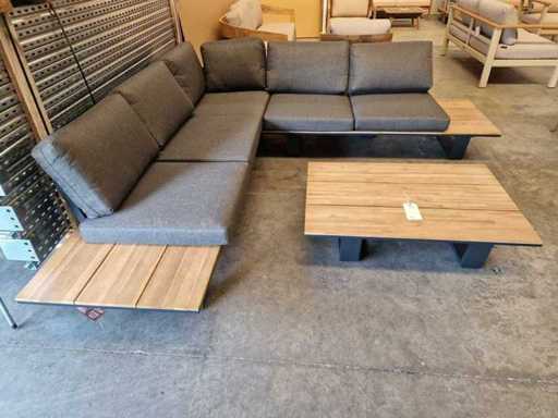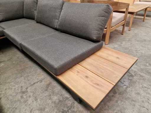 Prestige de jardin - Ensemble salon d’angle Lota Anthracite avec coussins Anthracite oléfine - Tables d’appoint en bois en acacia Look teck clair - Coussins lavables avec fermeture éclair - Assemblés neuf