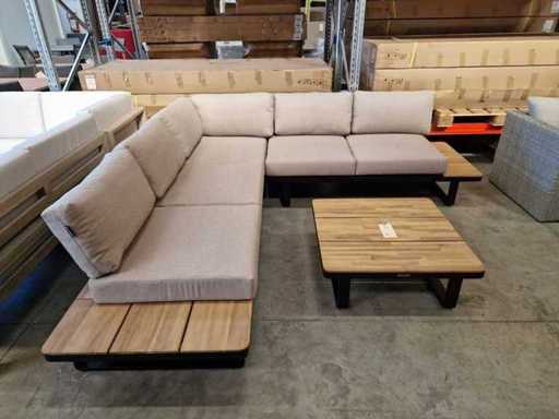 Garden Prestige - Ensemble salon d’angle Napoli noir avec coussins en sable oléfiné