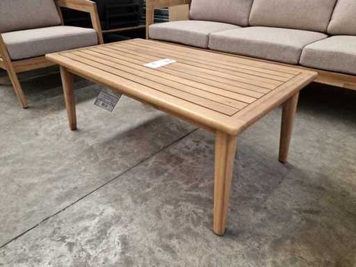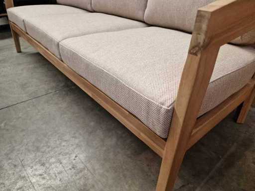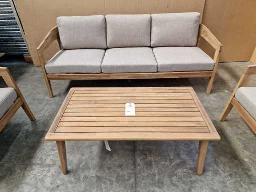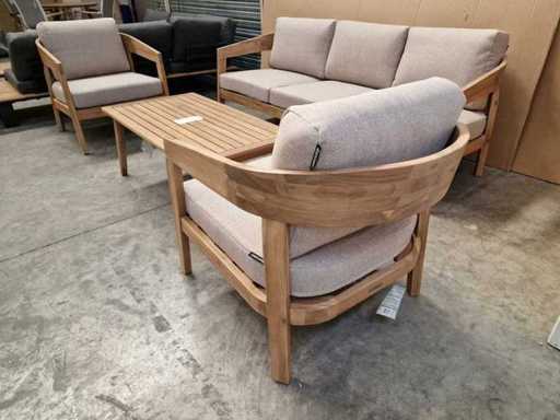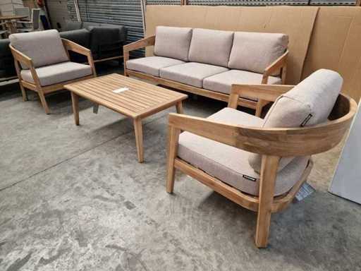 Garden Prestige - Ensemble salon Singapour avec coussins Sable oléfin - Bois Acacia Look teck clair - Coussins lavables avec fermeture éclair - Table basse incluse - Neuf