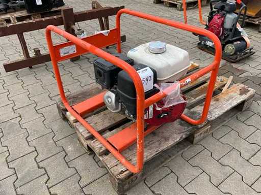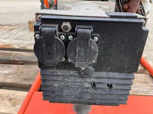 monté dans une poignée de transport ; Application : Jardin/Camping/Vendeur de bateaux/marchés/Éclairage/Machines/Chars de parade ; 2x 230 volts ; 16 ampères ; 3,6 kW ; capacité du réservoir de carburant de 5,3 litres ; consommation de 2 litres à charge maximale ; moteur à essence ; ne fonctionnant pas ;