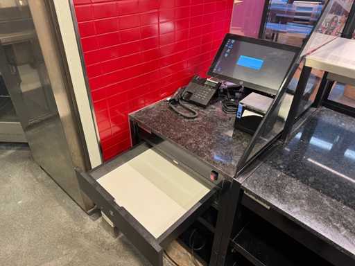 Année de construction 2024. Équipée d’une caisse enregistreuse, d’un écran tactile et d’une imprimante de reçus.