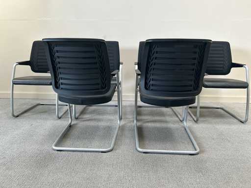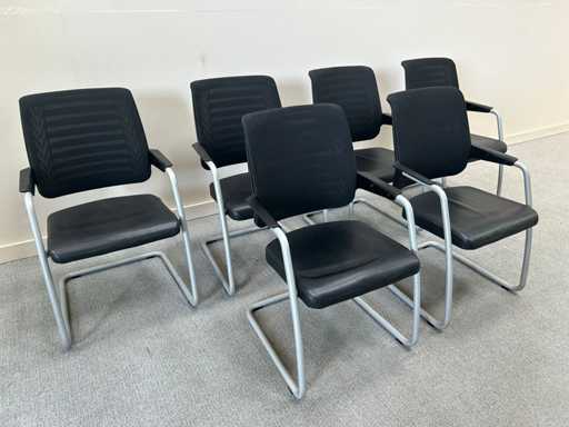 Un ensemble de 6 chaises visiteurs en porte-à-faux Girsberger en noir. Avec des signes d’usure, l’état peut varier d’un article à l’autre.