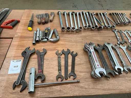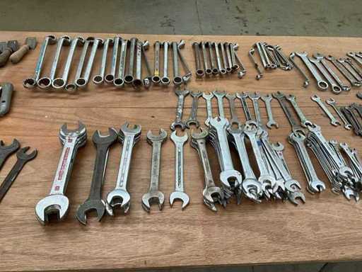 Composé d’un grand lot de différentes clés à bague plate et de clés à anneau