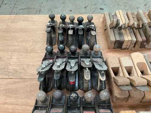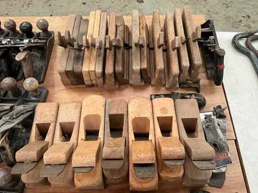 Composé d’un grand lot de rabots manuels variés, soit environ 40 pièces