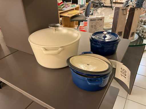 Des casseroles en fonte avec couvercle, toutes émaillées à l’intérieur