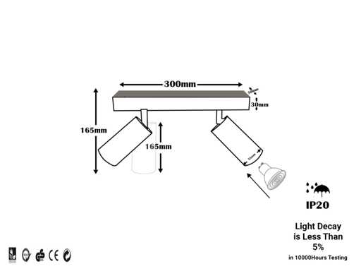 8 x GU10 lampe de plafond montée en surface – Matériau : Aluminium de haute qualité – Couleur : Noir (Noir) – Type de montage : Surface – Porte-lampe : GU10 – Nombre d’emplacements : 2 réglables – Rotation : 350° – Inclinaison : 70° – Dimensions : 300 x 165 x 50 mm – Tension : AC 85–265V (50/60Hz) – Classification de protection : IP20 – Application : Intérieur – Ampoules : Non incluses – Ensemble de montage inclus