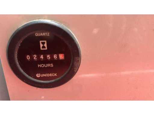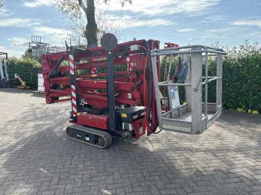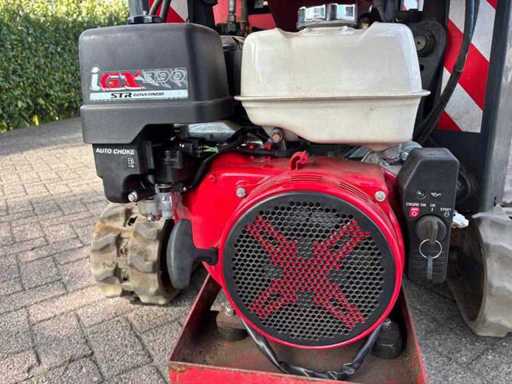 Plateforme adaptée à 2 personnes * capacité maximale de montée 38,4 % * contrôle proportionnel * vitesse de course 3,3 km/h * équipée d’un moteur essence Honda * chenilles réglables en largeur * fonctionne sur moteur essence et 240V électrique