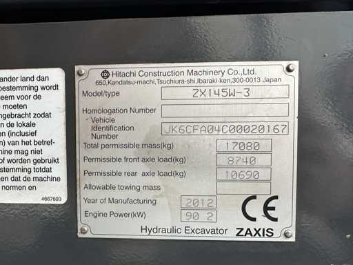 Hitachi - 2012 - ZX145W-3 - Pelle à roues
