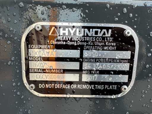 Hyundai - 2017 - R60V - Excavatrice Midi