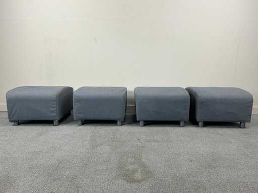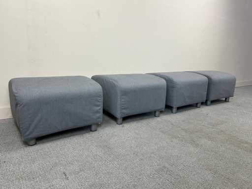 Lot de 4 poufs Ikea en tissu gris. Légers signes d’usure sur les surfaces d’assise. L’état peut varier selon l’article.
