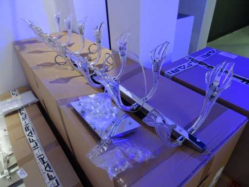 Couleur : chrome ; Nombre de sources lumineuses : 14 ; avec du cristal ; Dimensions : Largeur : 150 cm