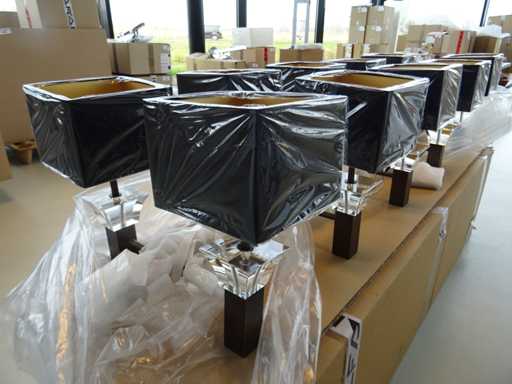 Couleur : bronze, casquettes noires ; Nombre de sources lumineuses : 10 ; Notez l’exemple de photo, il s’agit d’un luminaire couleur bronze au lieu du noir montré ; Taille : environ 146 cm