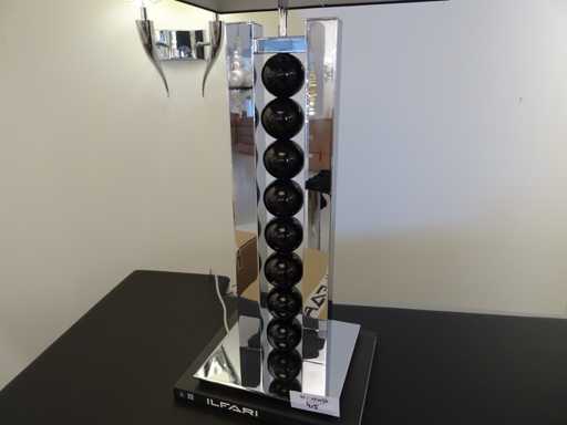 Couleur : Chrome, abat-jour noir, boules en verre noir ; Nombre de sources lumineuses : 1 ; Dimensions : Hauteur : 84 cm