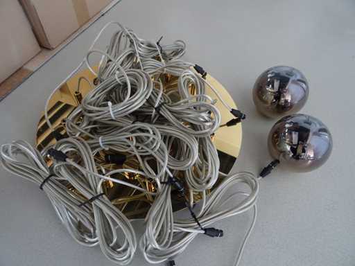 Couleur : Ballons en laiton brillant, infusés d’or ; Nombre de sources lumineuses : 15 ; Diamètre de la plaque de plafond : 35 cm