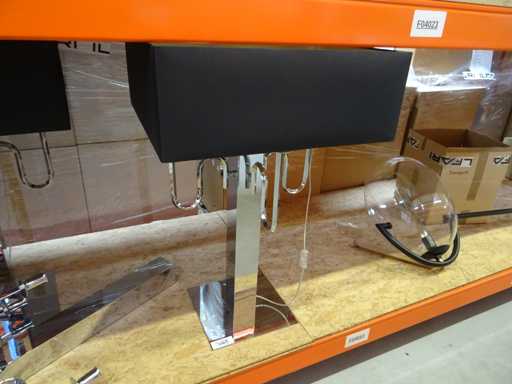 2x lampe de table chromée avec abat-jour noir 86x55x55cm (hxxxd) et 1x lampe murale 66x49x30cm (hxbxd)