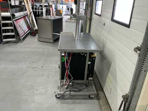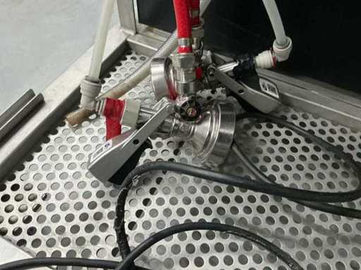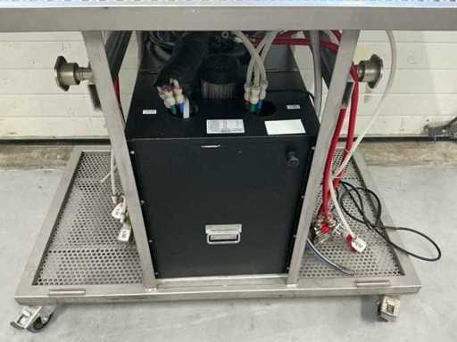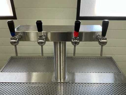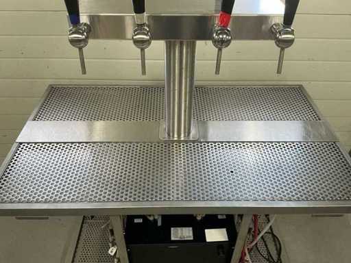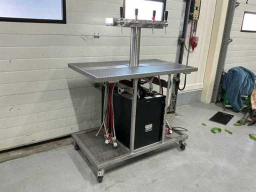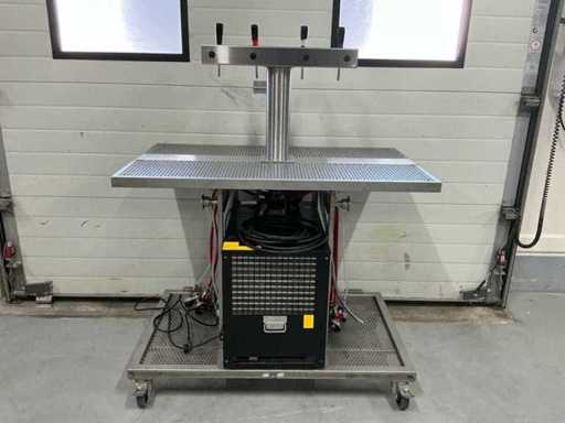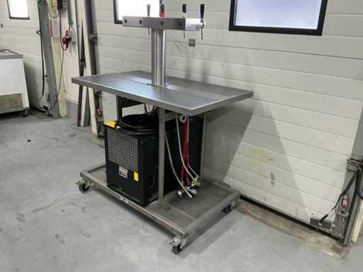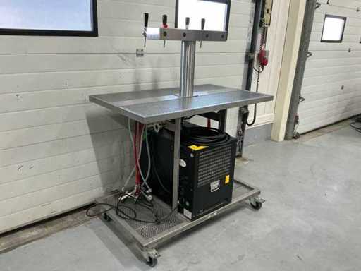 Équipé de : 4 robinets à robinet avec compensateur, refroidisseur Lindr AS200 greenline, 4 circuits de refroidissement, refroidissement jusqu’à 200L par heure, 4 accouplements keykeg, station destinée à être utilisée comme robinet de bière/robinet festival/robinet cocktail, hauteur de fonctionnement : 100 cm, mobile (4 roues)