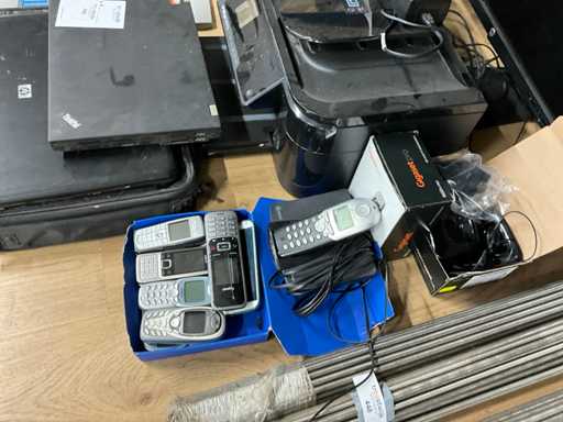 Composé de : divers téléphones, un ordinateur portable 2x, un PC avec moniteur, une imprimante