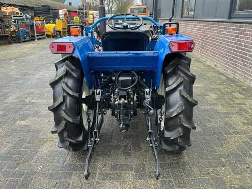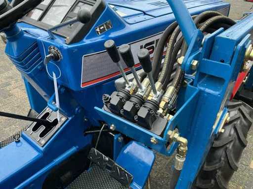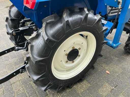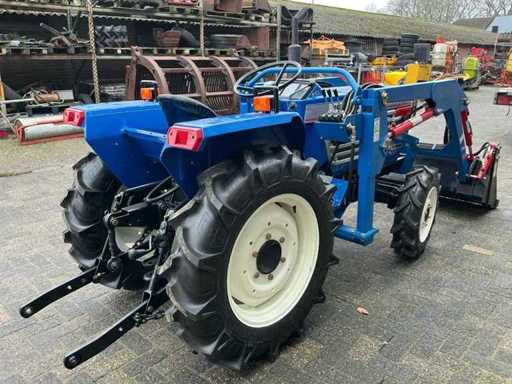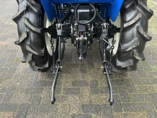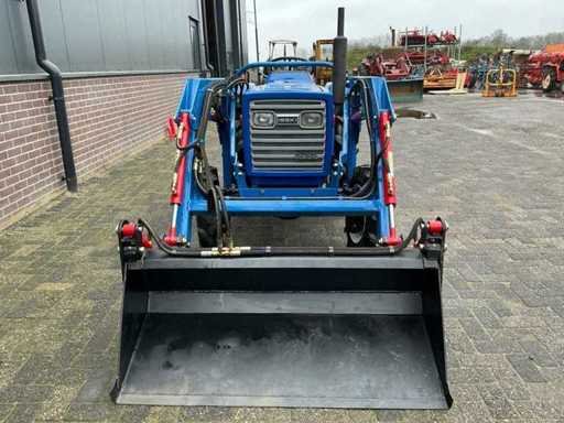 Équipé d’une tringlerie, prise de force 4 positions, chargeuse frontale avec fonction basculement, crochet de tirage inférieur — dimensions du godet 50x125x33