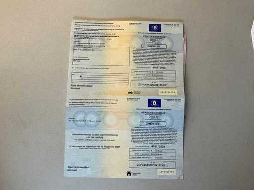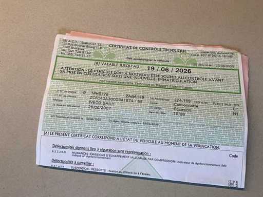 Documents embarqués présents : certificat d’immatriculation parties I et II, certificat d’inspection, certificat de conformité, Car-Pass