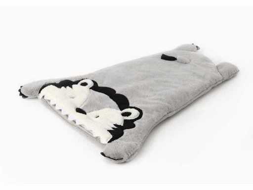 - un sac de couchage/carreaux représentant un lion dans lequel on peut ramper