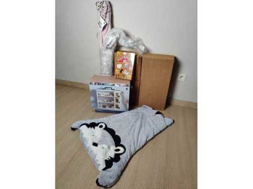 Jouets éducatifs : Maison de poupée en bois - Lapin tableau noir - Tente en lin - Robinet marteau - Lion à carreaux (sac de couchage)