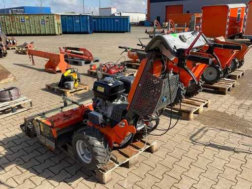 Radier électrique modèle R2 MT90, application : casser des touffes de terre en morceaux plus petits et desserrer la terre ; base parfaite pour planter des plantes, du gazon, des terrasses ; profondeur ajustable à l’infini ; entraînement mécanique/hydraulique ; des poignées à réduction des vibrations ; moteur Honda GX390 9,5 kW ; 13 ch ; conditions de travail ;