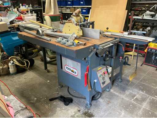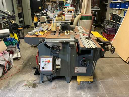 Proposée par un atelier professionnel : cette machine combinée Kimac K260 avec table à rouleaux est une machine à bois industrielle solide fabriquée en Belgique, construite pour la précision et la durabilité. La machine combine plusieurs fonctions telles que le sciage, le fraisage et le perçage, idéale pour un usage professionnel ou l’amateur expérimenté. Alimenté par de puissants moteurs 380V, il offre des performances stables et des résultats précis. La machine a été utilisée mais est en état de marche, y compris les guides réglables, la table coulissante et le panneau de commande.